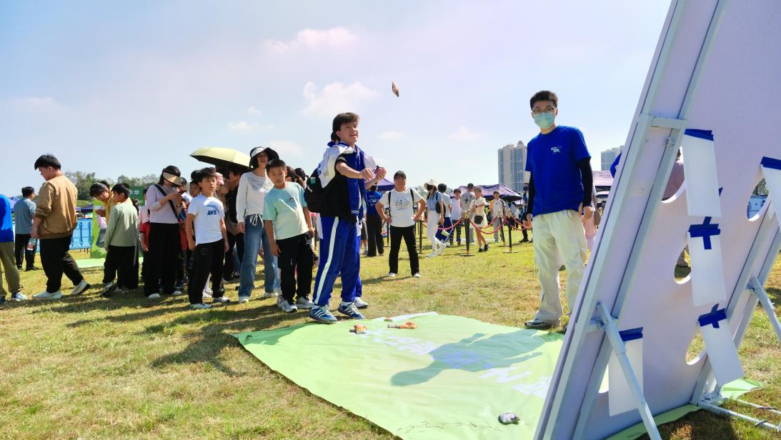 互動體驗(yàn)是本次活動的亮點(diǎn)。在實(shí)驗(yàn)秀上,高溫超導(dǎo)磁懸浮、核孔膜超黑材料隱身等趣味實(shí)驗(yàn)輪番上演;在“粒子特工訓(xùn)練基地”,孩子們通過游戲模擬重離子在加速器中的運(yùn)動軌跡,在沉浸體驗(yàn)中理解重離子加速器的工作原理;創(chuàng)工坊里,孩子們在手工老師的指導(dǎo)下進(jìn)行科學(xué)制作,進(jìn)一步激發(fā)了他們對科學(xué)探索的熱情。