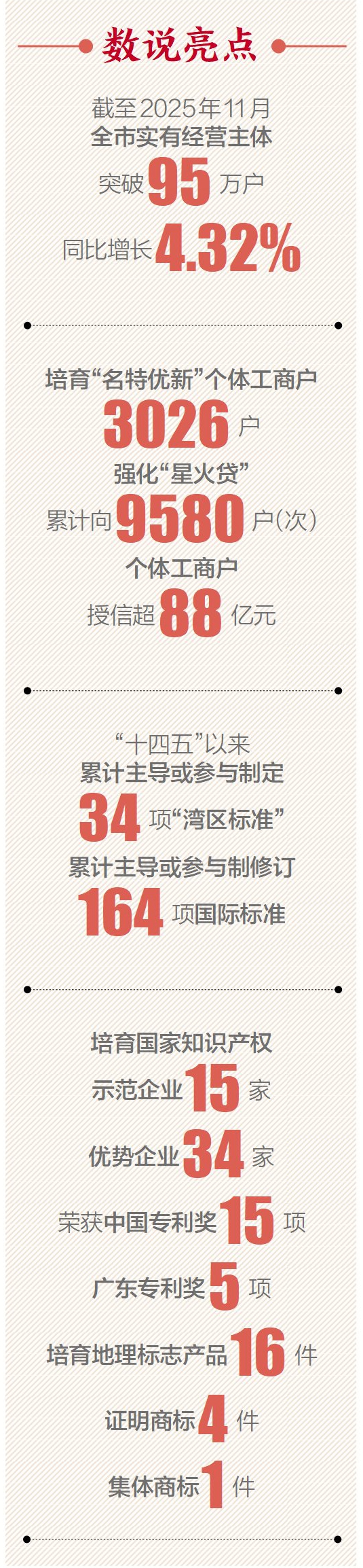 營商環(huán)境是企業(yè)生存發(fā)展的土壤。“十四五”以來,惠州聚焦企業(yè)群眾關(guān)切,精準(zhǔn)施策打出優(yōu)化營商環(huán)境“組合拳”,吸引經(jīng)營主體加速布局。截至2025年11月,全市實有經(jīng)營主體突破95萬戶,同比增長4.32%,其中企業(yè)36.23萬戶,同比增長7.93%;個體工商戶58.49萬戶,同比增長2.23%。同時,健全經(jīng)營主體幫扶政策,培育“名特優(yōu)新”個體工商戶3026戶,強(qiáng)化“星火貸”,累計向9580戶(次)個體工商戶授信超88億元,深入推進(jìn)“粵質(zhì)貸”,賦能企業(yè)高質(zhì)量發(fā)展。