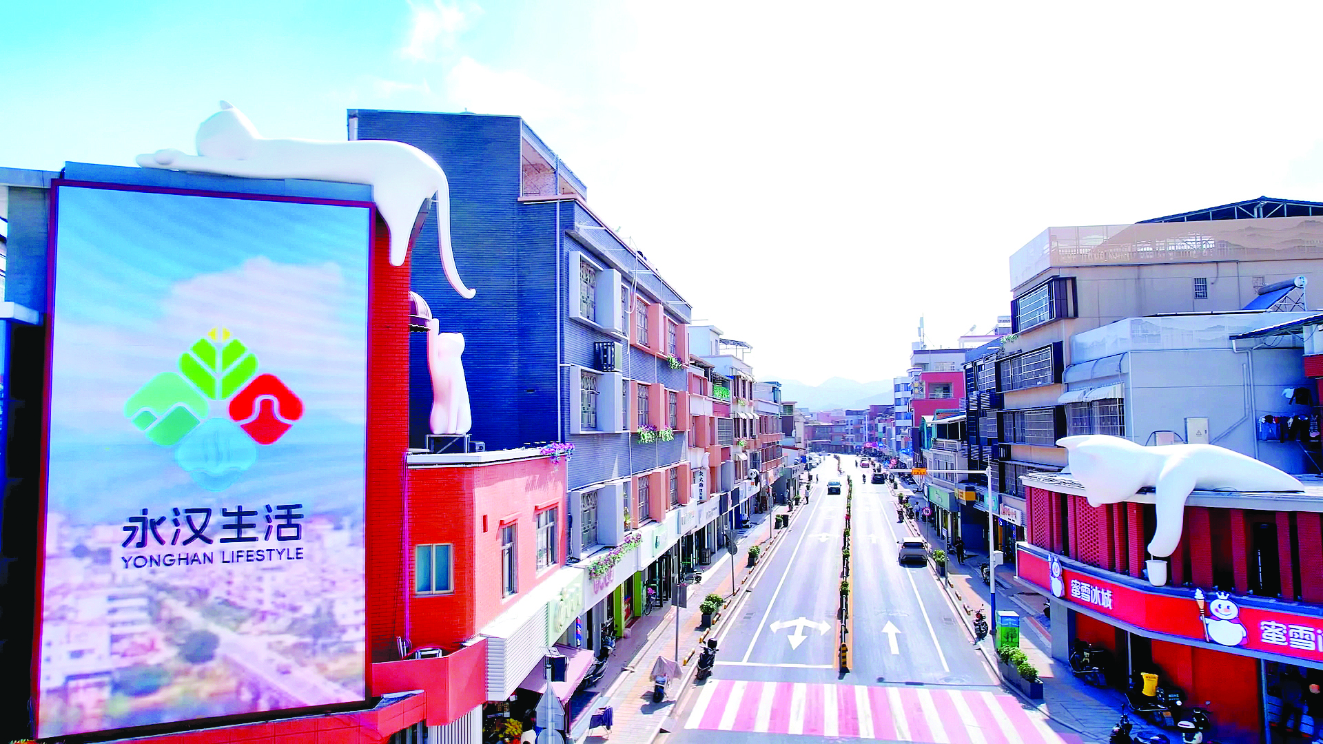 龍門(mén)縣永漢鎮(zhèn)打造豹貓IP形象,將其融入街頭店鋪房頂,讓圩鎮(zhèn)別有一番趣味;葜輺|江圖片社供圖