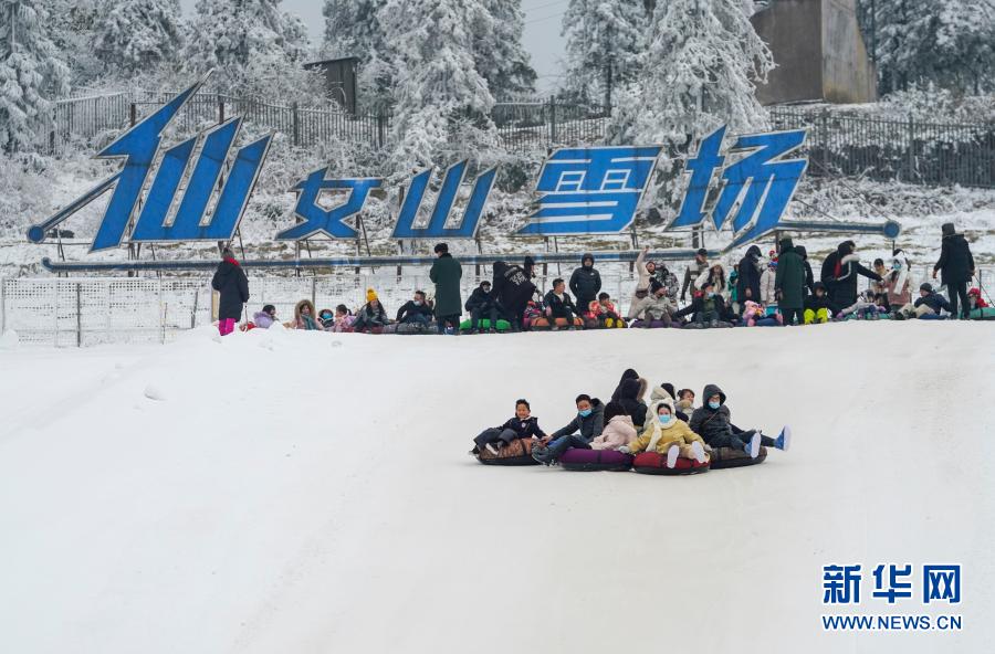 2021年1月2日,仙女山國家森林公園內(nèi),游客在滑雪場體驗雪上運動。新華社記者 劉潺 攝