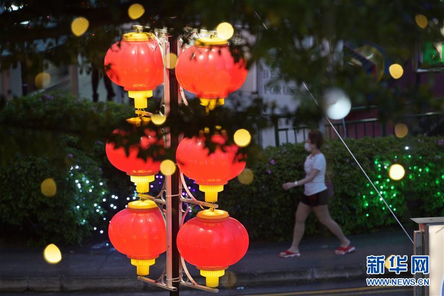 1月18日,慶祝農(nóng)歷新年的燈飾在新加坡紅山組屋區(qū)亮起。 新華社發(fā) (鄧智煒 攝)