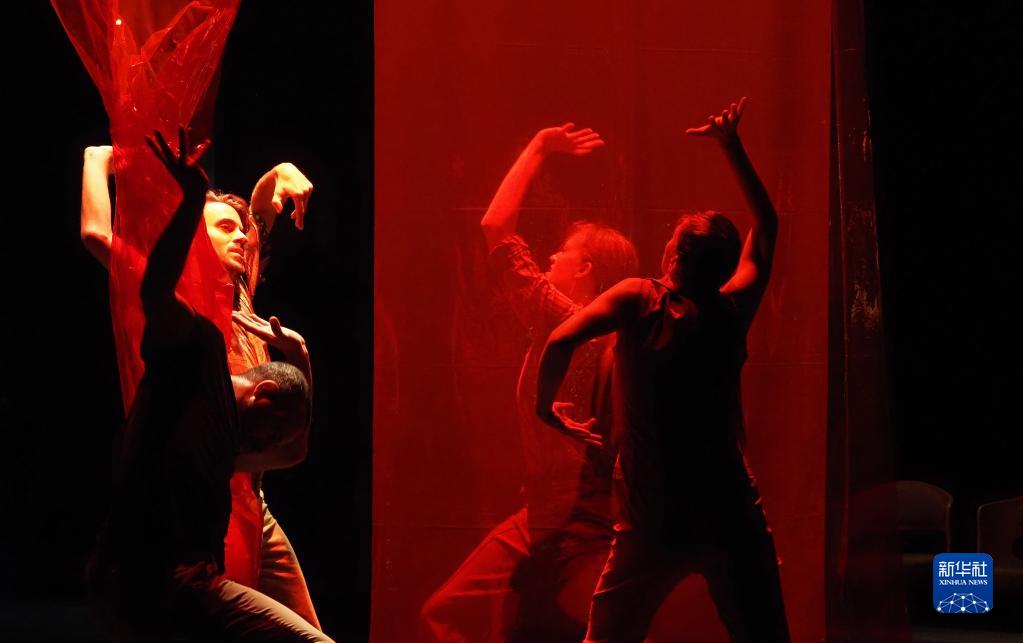 6月13日,瑞士約書(shū)亞·蒙登舞蹈團(tuán)的演員在上海國(guó)際舞蹈中心實(shí)驗(yàn)劇場(chǎng)表演《幸福的降落傘》。