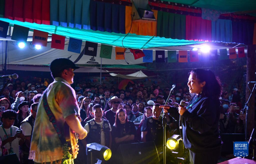 拉薩的年輕人在參加現(xiàn)場(chǎng)音樂會(huì)(2022年7月29日攝)。