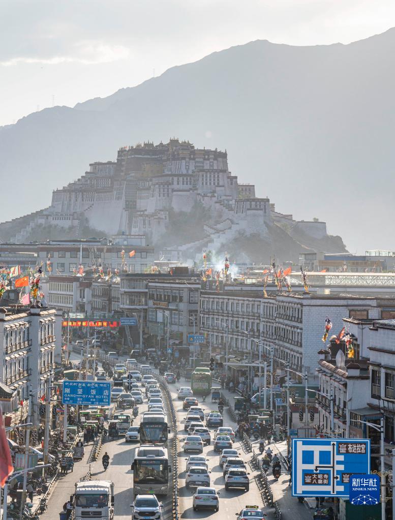 布達(dá)拉宮腳下車流如織(6月7日攝)。