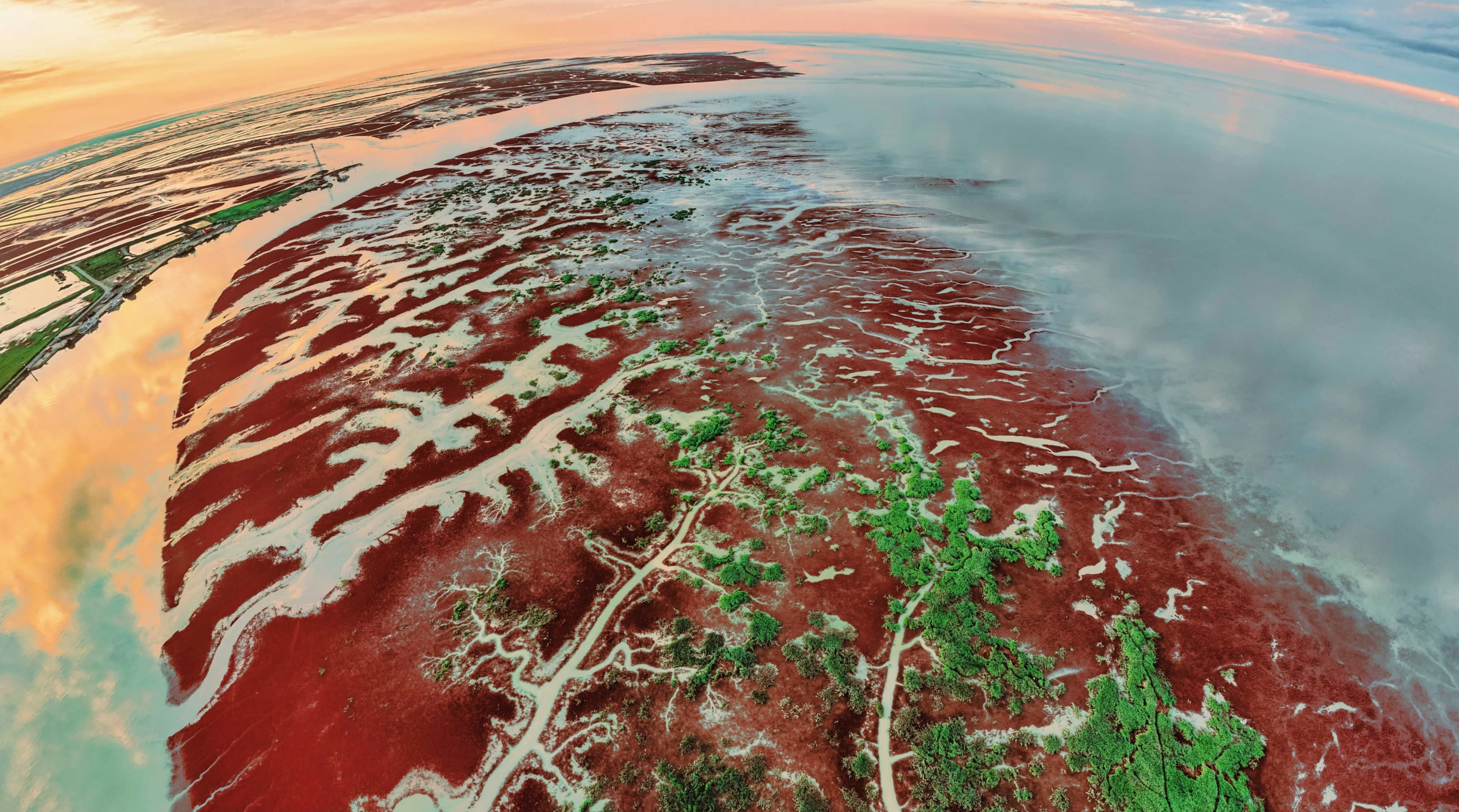 120萬畝堿蓬草在渤海潮聲中燃燒成極致的中國紅,赤毯接天、丹鶴起舞;登上觀景廊道,腳下是柔軟的濕地心跳,眼前是“中國最北紅色海岸線”的曠世浪漫。
