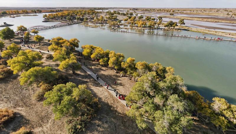 水中胡楊,別具風(fēng)韻。金波湖畔,碧水映金葉,仿佛大自然打翻了調(diào)色盤,成就了荒漠中最靈動的秋日童話。
